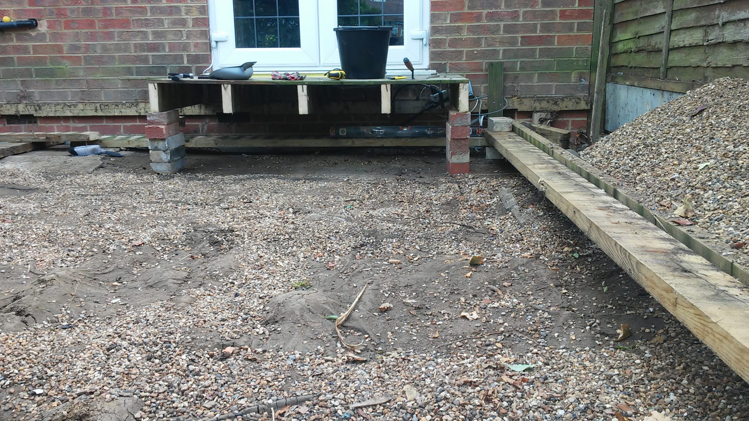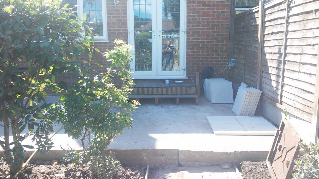 View of the new concrete screed under the patio