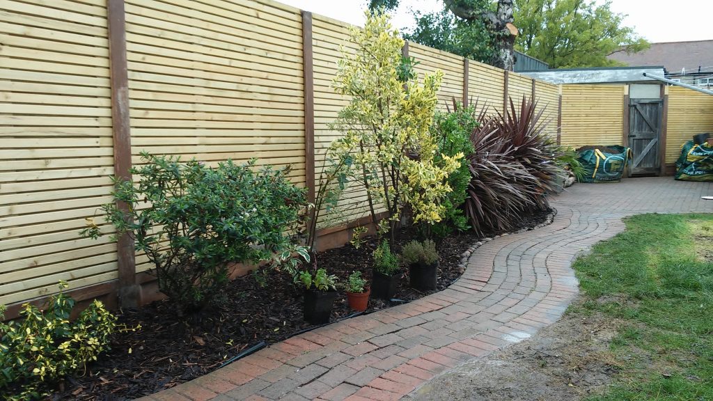 A new fence, dismantling the wooden terrace and making a patio, and garden arrangement.