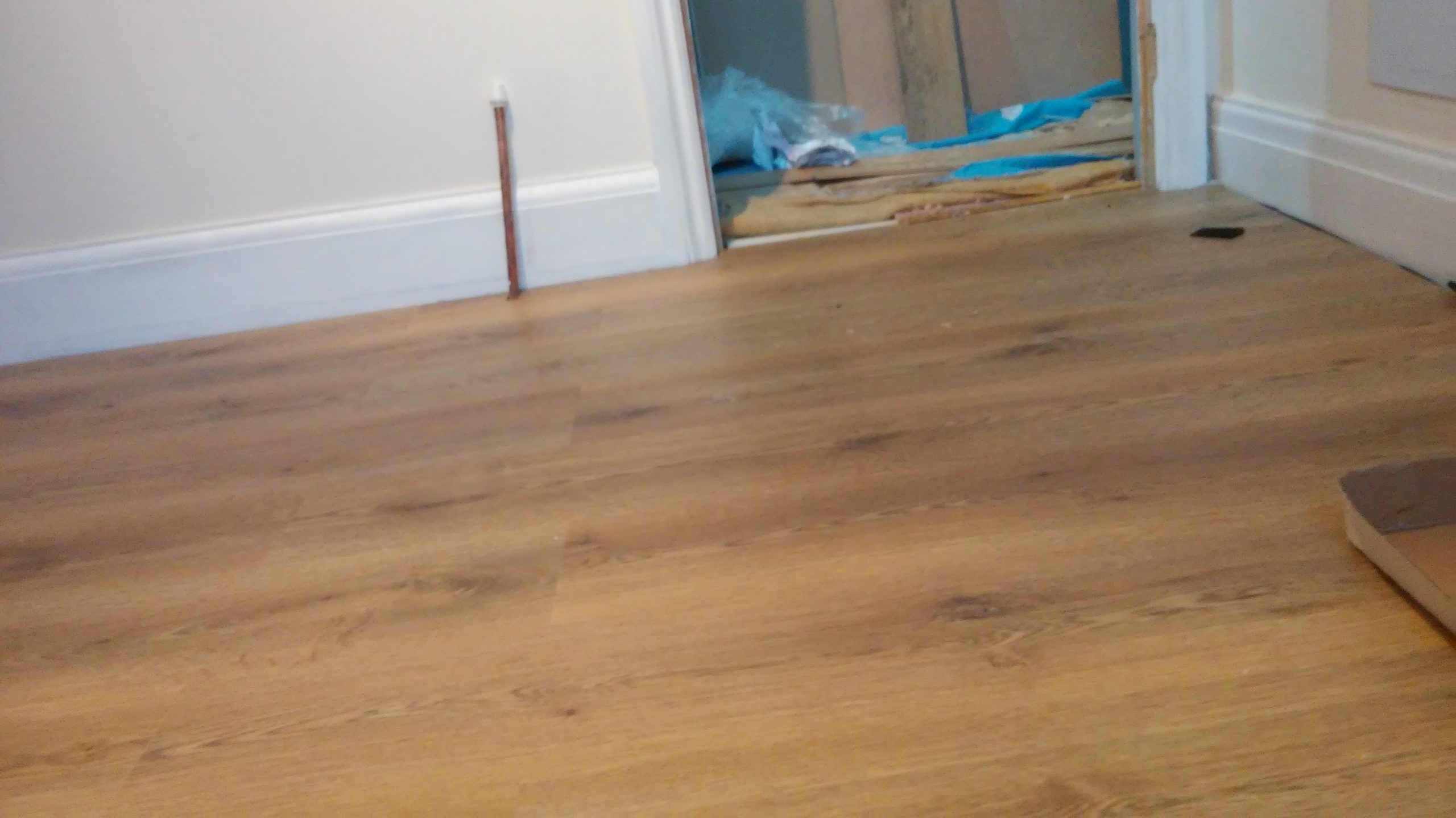 Extensive renovation of a small room, removal of old wallpapers, laying of new plaster, laying of floor panels and fitting of new doors